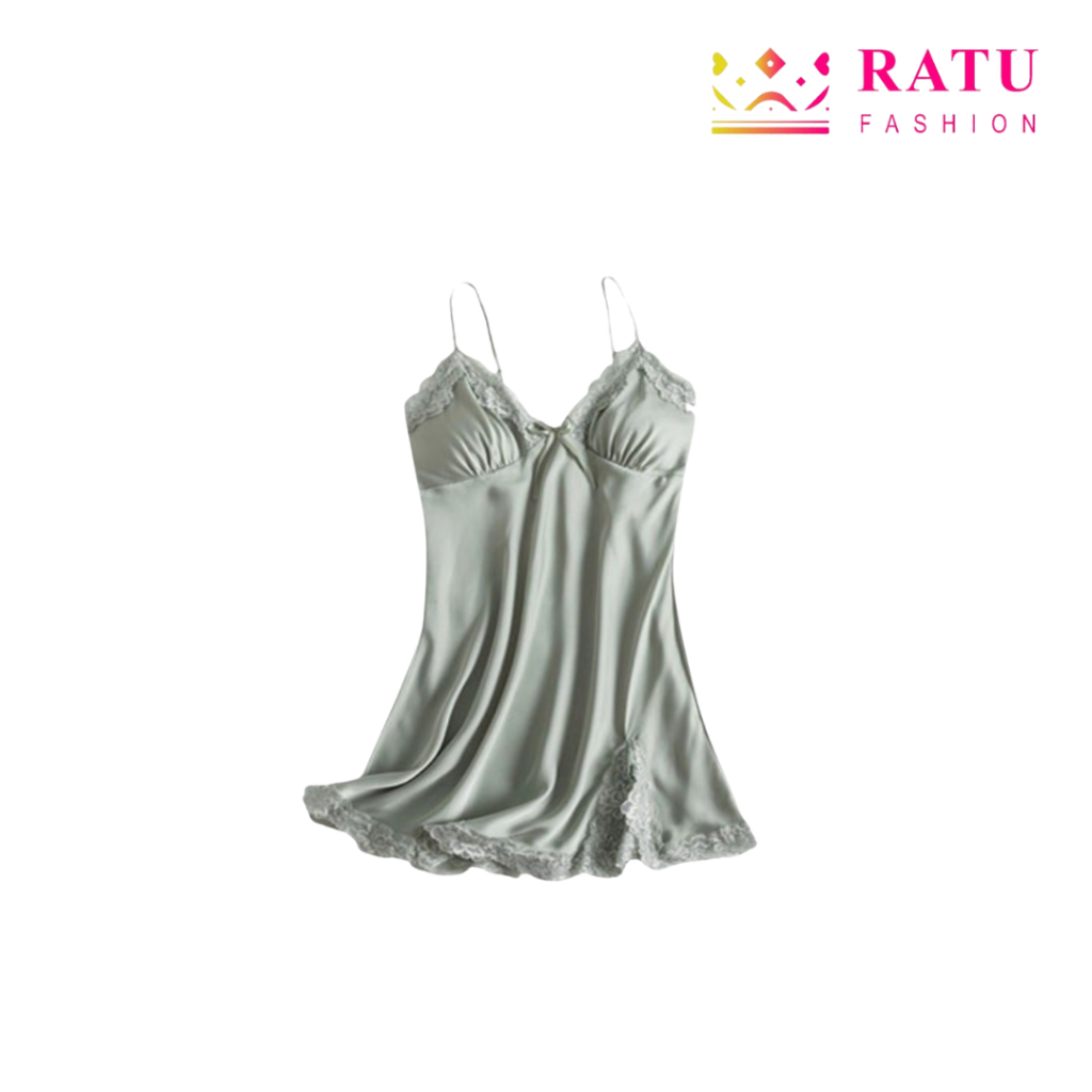 Jual Ratu Fashion Baju Tidur Lingerie Wanita Gaun Mini Deep V Silk Renda Bahan Satin Bt is a popular picture for sexy and hot.