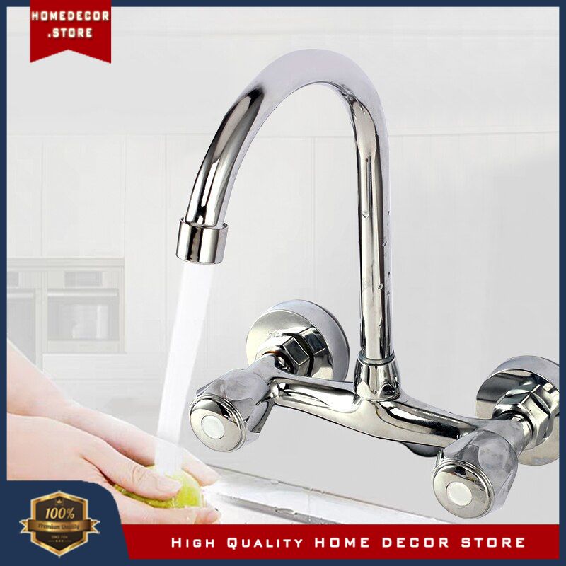 Tag : Jual Wall Mounted Kitchen Faucet Double Handle Sink Basin Tap Cold Hot Water Mixer Tap Dual Hole