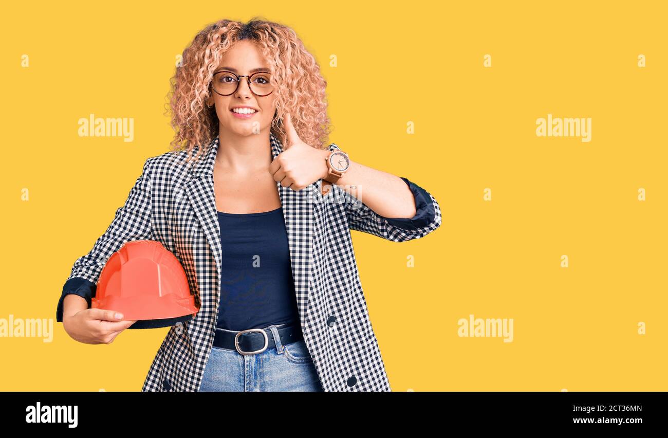 Junge Blonde Frau Mit Lockigen Haaren Tr Gt Architekt Hardhat L Chelnd Gl Cklich Und Positiv is a popular picture for sexy and hot.