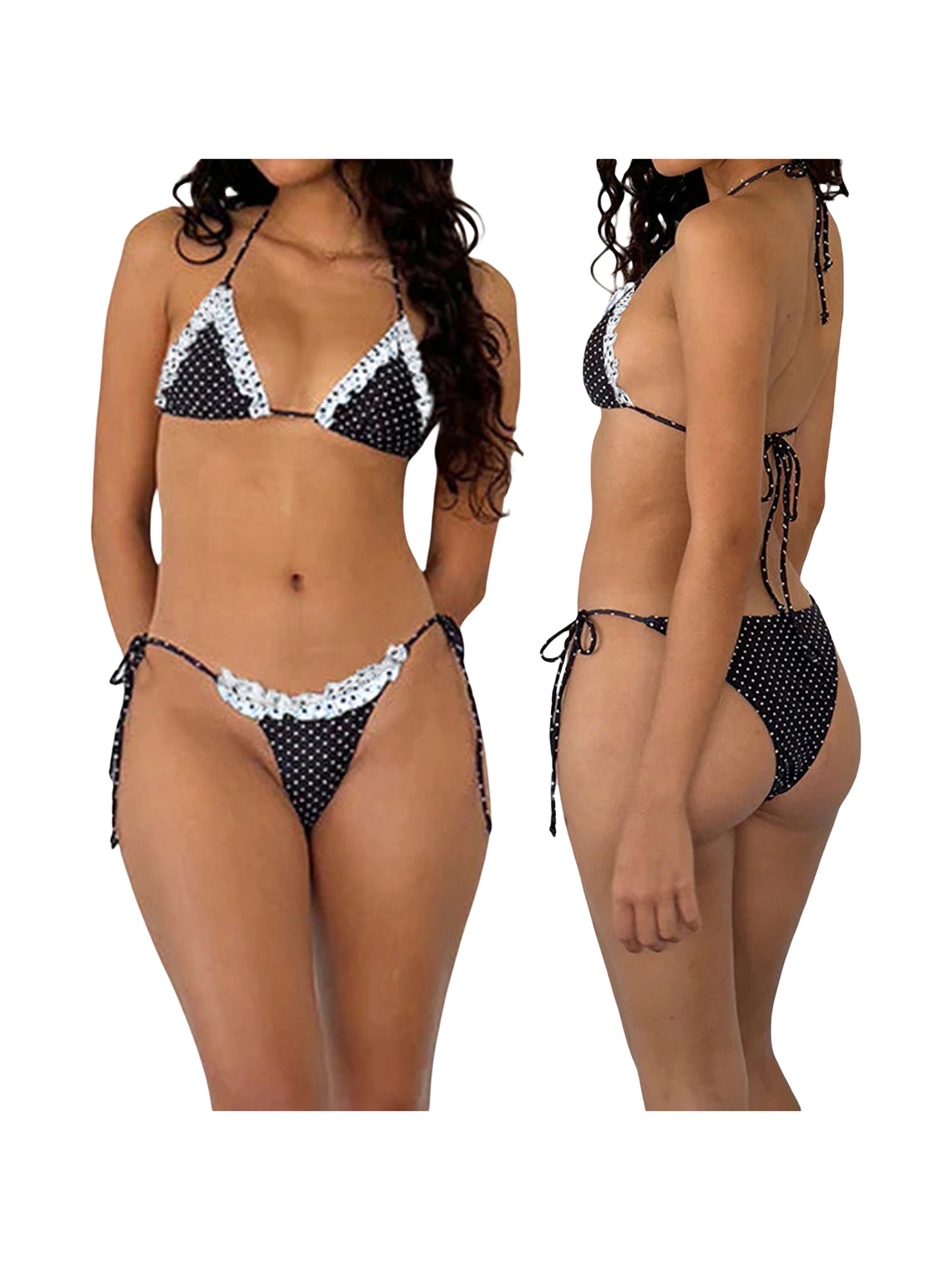 Tag : Kelajuan Women S Summer Bikini Set Mini Dot Print Lace Trim Halter Bra With Tie Up Thong
