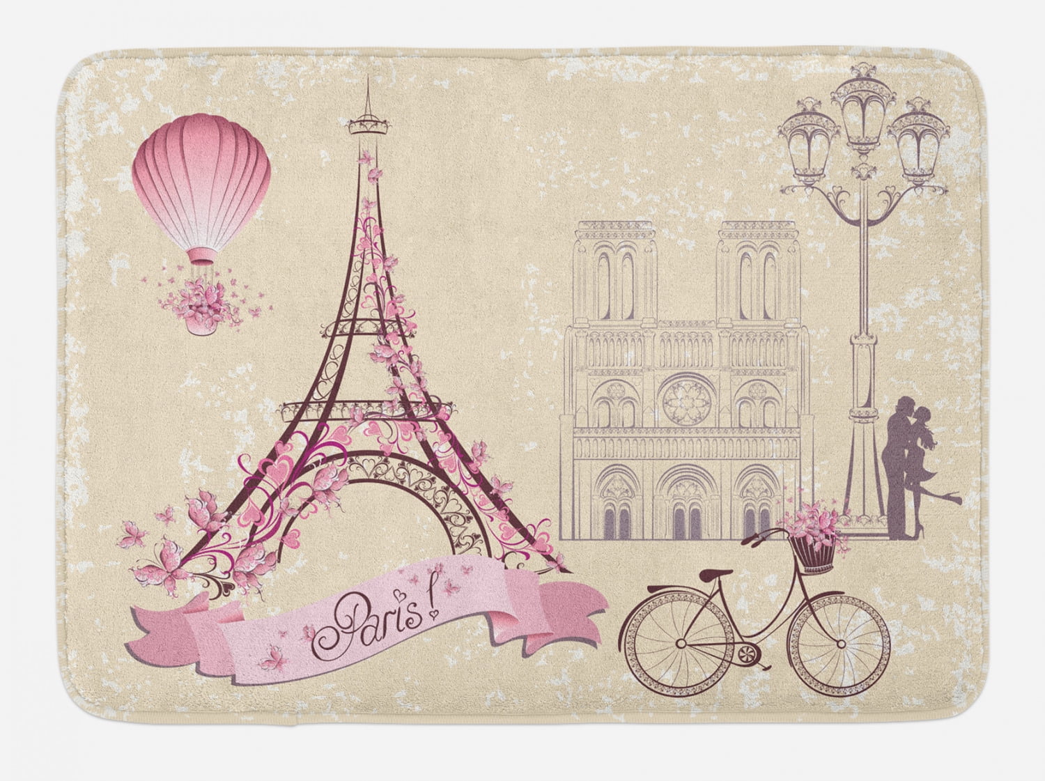 Tag : Kiss Bath Mat Floral Paris Symbols Landmarks Eiffel Tower Hot Air Balloon Bicycle Romantic