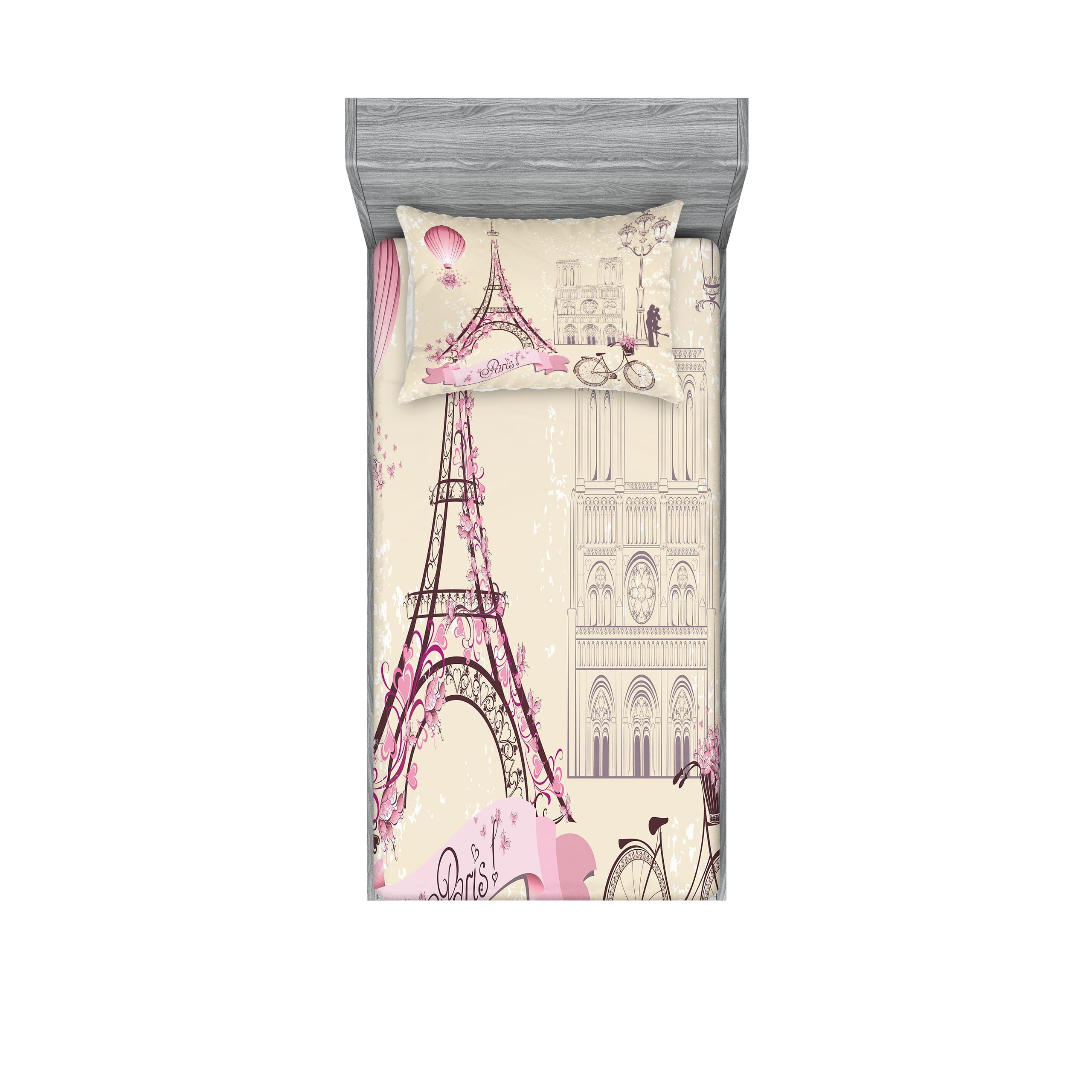 Kiss Fitted Sheet Pillow Sham Set Floral Pariss Landmarks Eiffel Tower Hot Air Balloon pictures has 500 x 400 · 50 kB · jpeg.