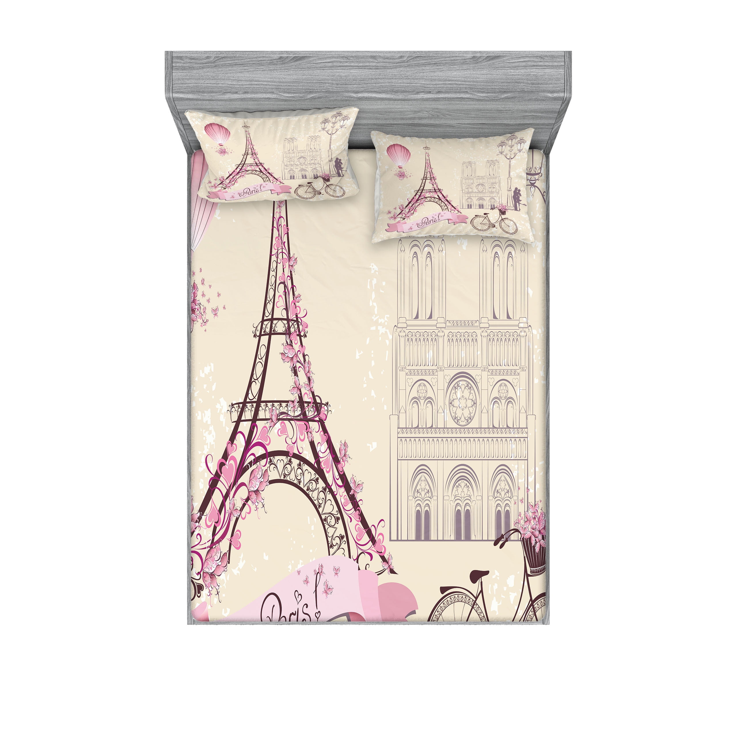 Kiss Fitted Sheet Pillow Sham Set Floral Pariss Landmarks Eiffel Tower Hot Air Balloon pictures has 500 x 400 · 50 kB · jpeg.