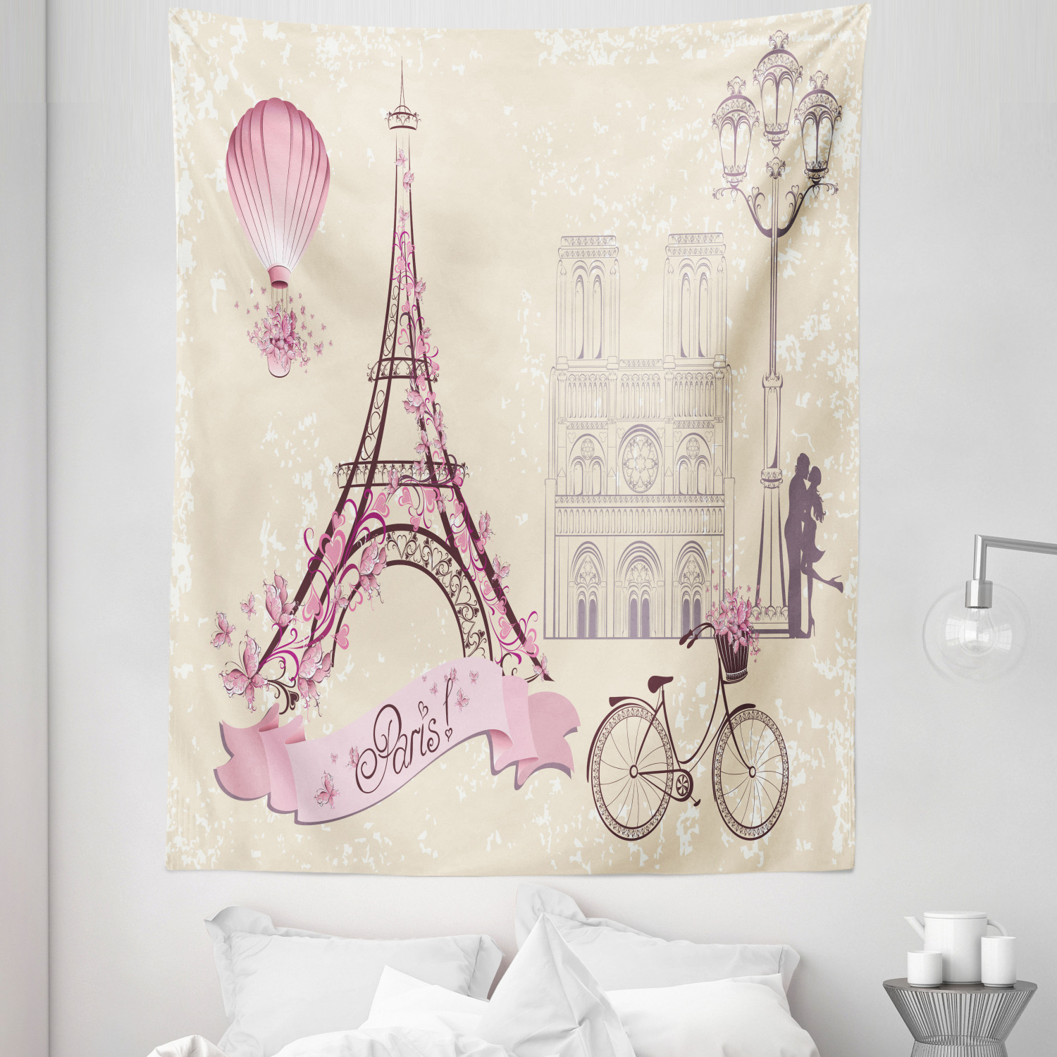 Tag : Kiss Tapestry Floral Pariss Landmarks Eiffel Tower Hot Air Balloon