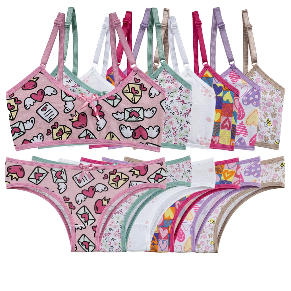 Tag : kit Conjuntos Top e Calcinha Juvenil Lingerie Estampado Moda Infantil Menina Moça Cotton