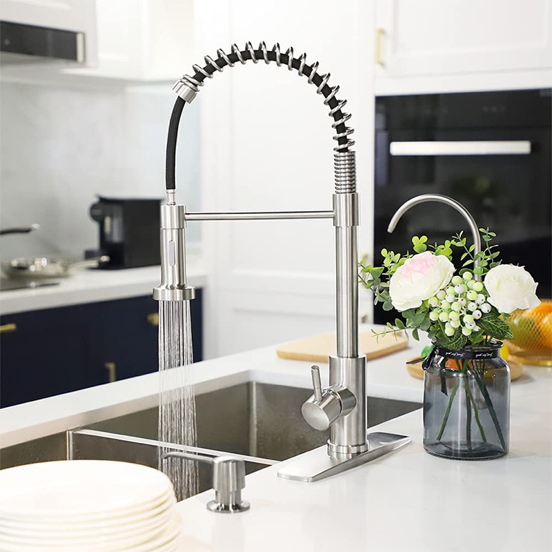 Tag : Kitchen Pull Out Stainless Steel Spring Faucet With One Click Water Stop Hot And Cold