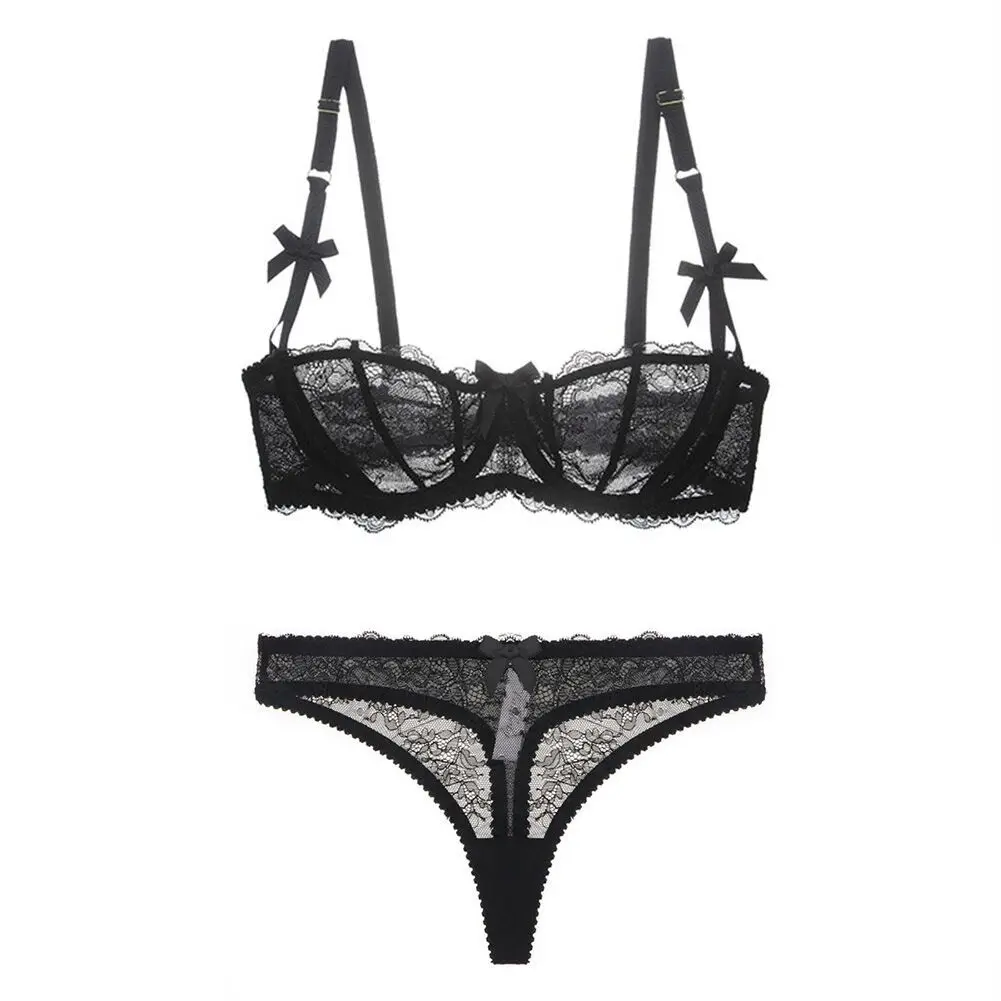 Lace Half Cup Bra Set With Thong Transparent Lingerie Hot Erotic Bra And Panty Set Plus is a popular picture for sexy and hot.