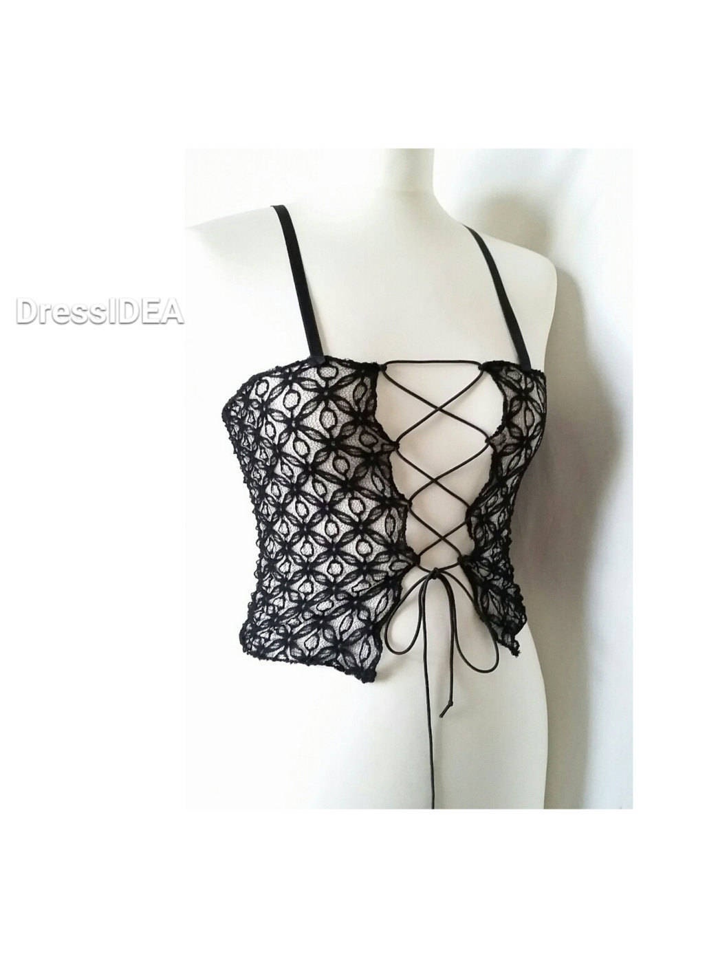 Tag : Lace Up Bodice Black Sheer Strap Top Seethru Lingerie Womens Mall Goth Etsy