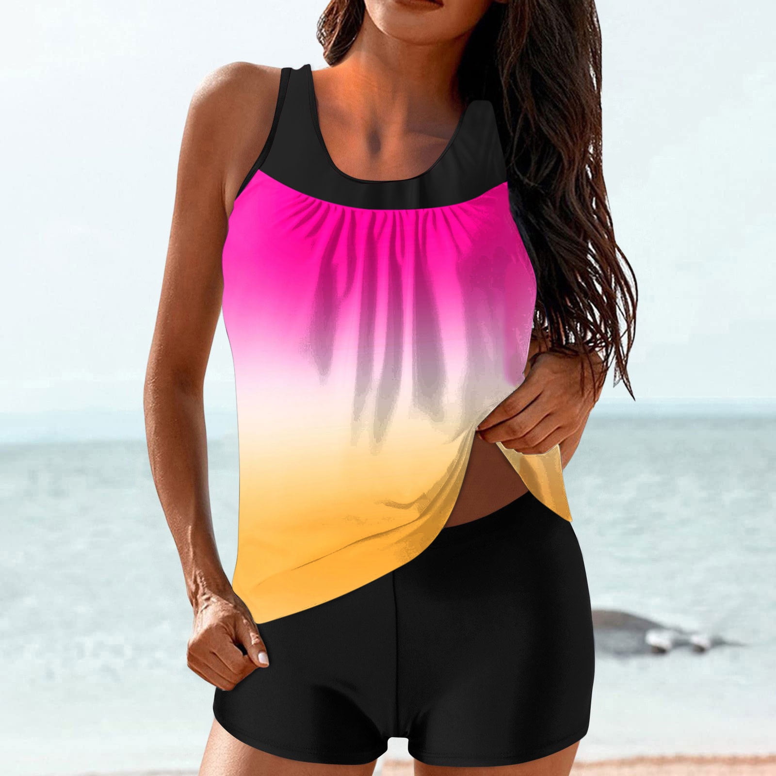 Tag : Lebonyard Women S Two Piece Swimwear Side Ruched Bikini Set Flattering Women Conservative Print