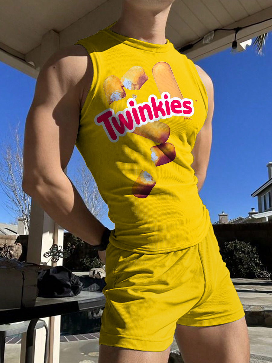 Lgbt Gay Pride Twinkies Print Casual Vest And Shorts Set is a popular picture for sexy and hot.