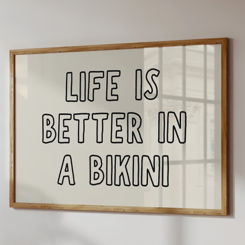 Life Is Better In A Bikini Print Cute Beach Wall Art Trendy Coastal Print Funny Pool Poster is a popular picture for sexy and hot.
