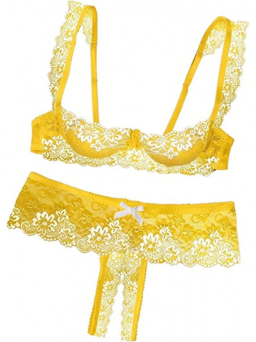 Lilosy Women White Floral Lace Sheer Lingerie Set Underwire See Through Bra And Panty Shein Usa is a popular picture for sexy and hot.