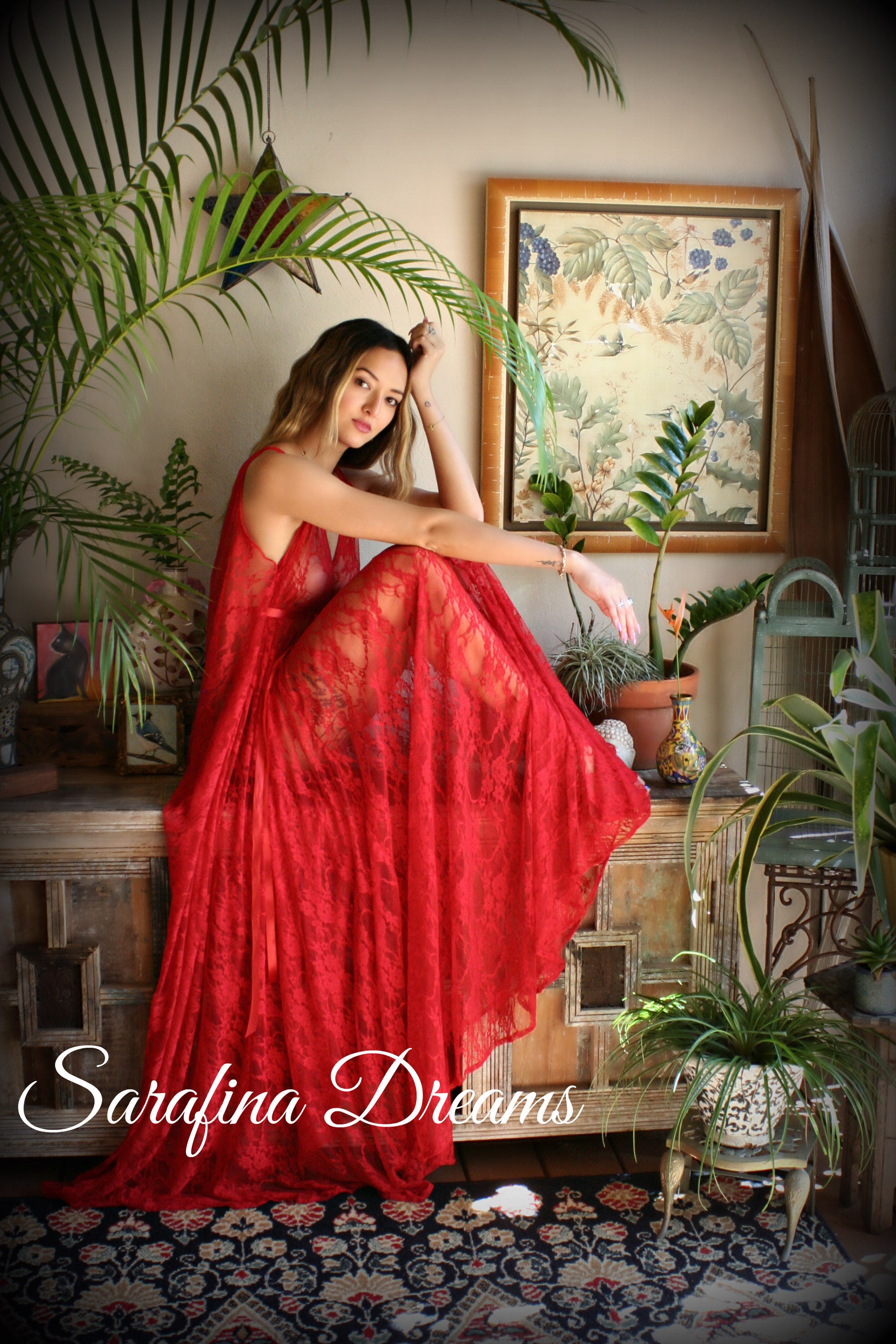 Tag : Limited Edition Red Lace Backless Nightgown Lace Lingerie Red Lace Sleepwear Nightgown Red