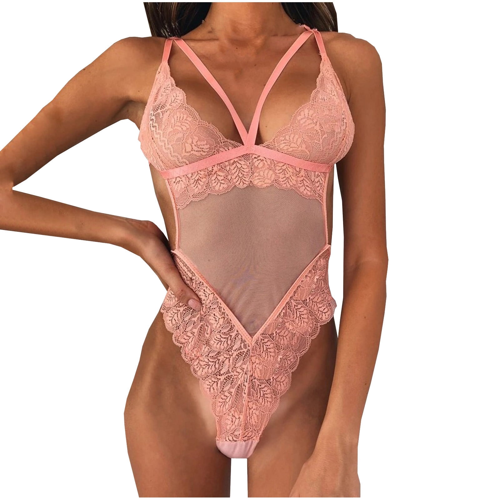 Lingerie For Women One Piece Lingerie Deep V Teddy Sexy Lace Bodysuit Strappy Lingerie is a popular picture for sexy and hot.