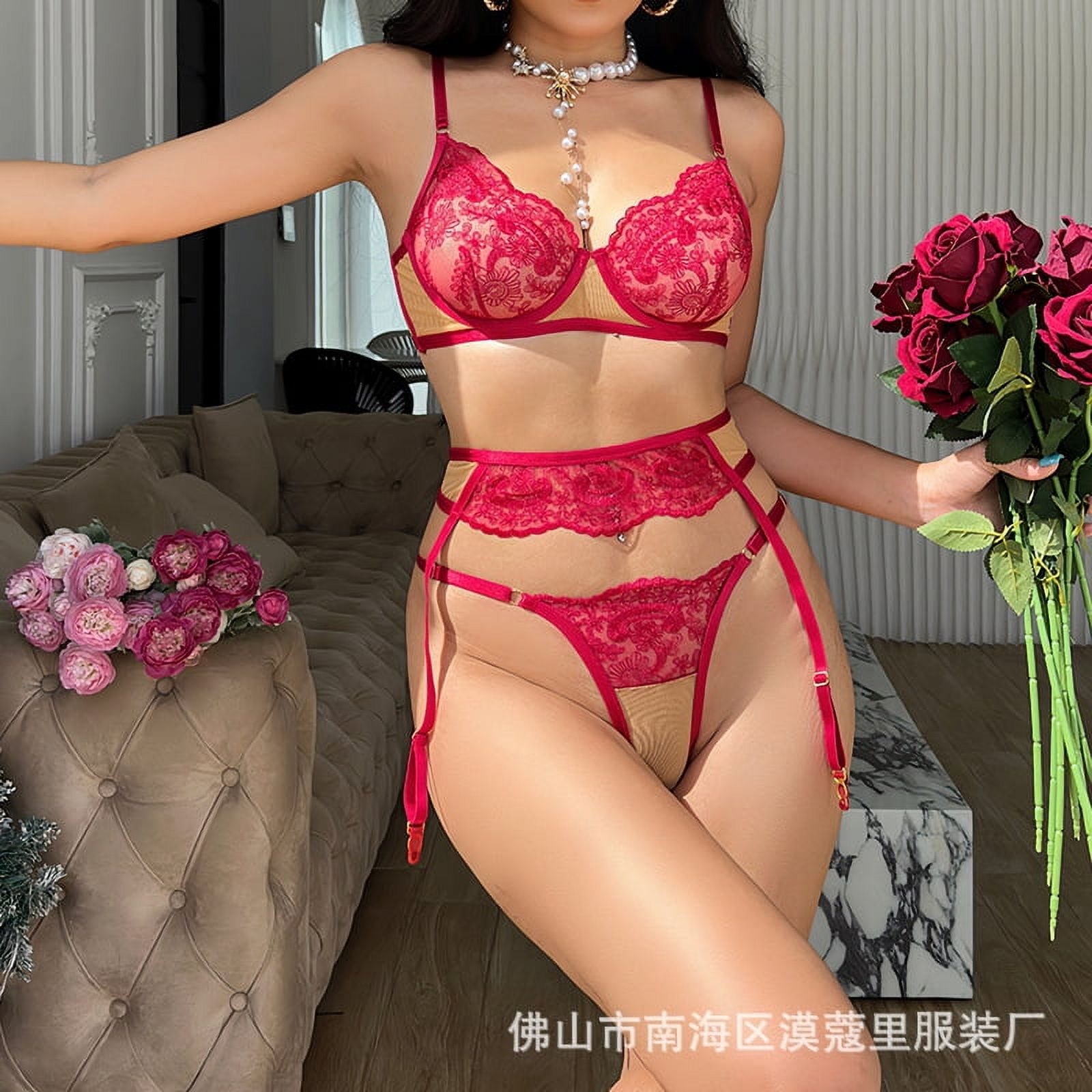 Lingerie Sexy Lingerie Steel Ring Push Up Sexy Lace Red Bra Garter Three Piece Set Walmart is a popular picture for sexy and hot.