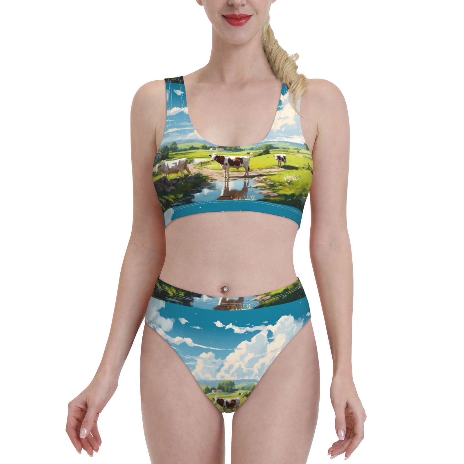 Logiee Countryside Farm Cow Print Women S Piece Bikini Set Halter Bathing Suit High Waisted 114296
