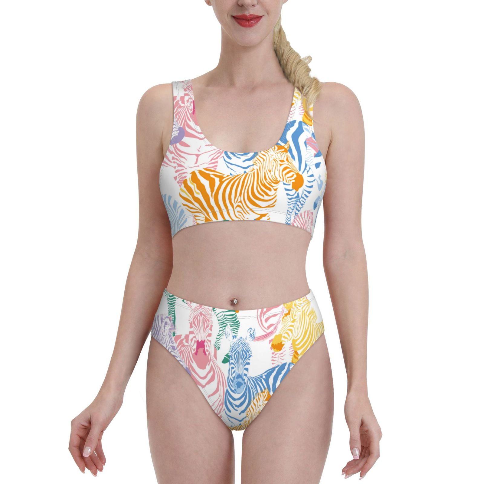 Logiee Zebra Colourful Print Women S Piece Bikini Set Halter Bathing Suit High Waisted Bikini