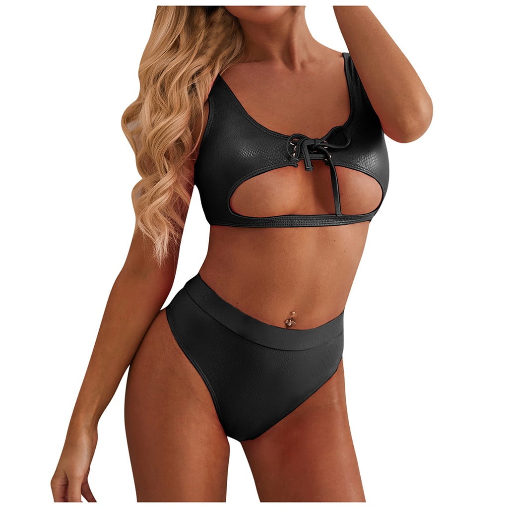 Lroveb Bikini Sets For Women Fashion Sexy Pure Color Leather Strap Swimsuit Piece Swimsuit is a popular picture for sexy and hot.