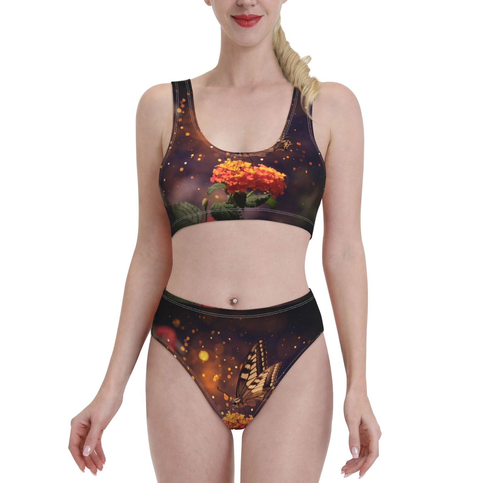 Lukts Women High Waisted Bikini Set Butterfly Sitting On A Flower Swimsuit Piece Bathing Suit is a popular picture for sexy and hot.