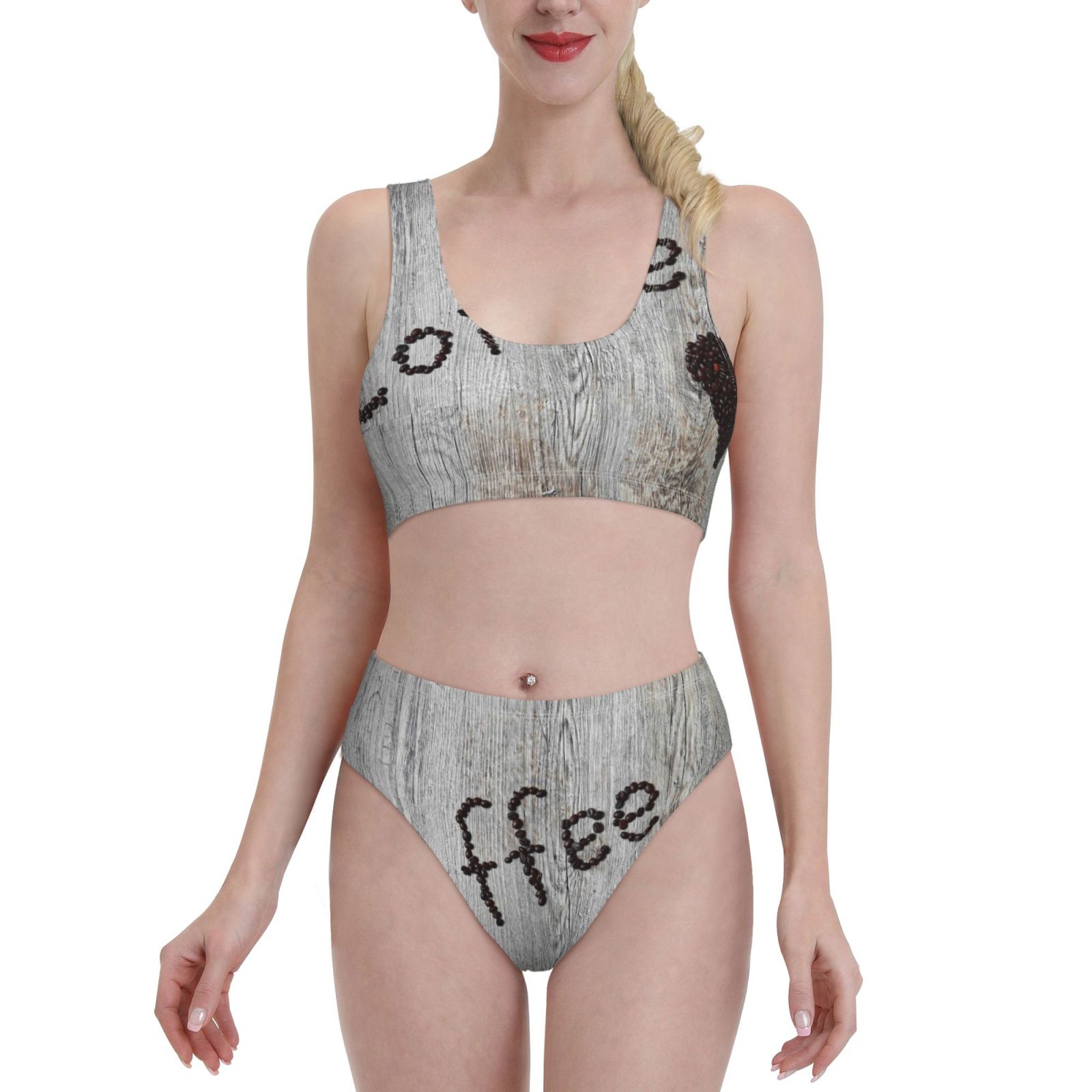 Lukts Women High Waisted Bikini Set Coffee Beans On Board Swimsuit Piece Bathing Suit Tummy is a popular picture for sexy and hot.