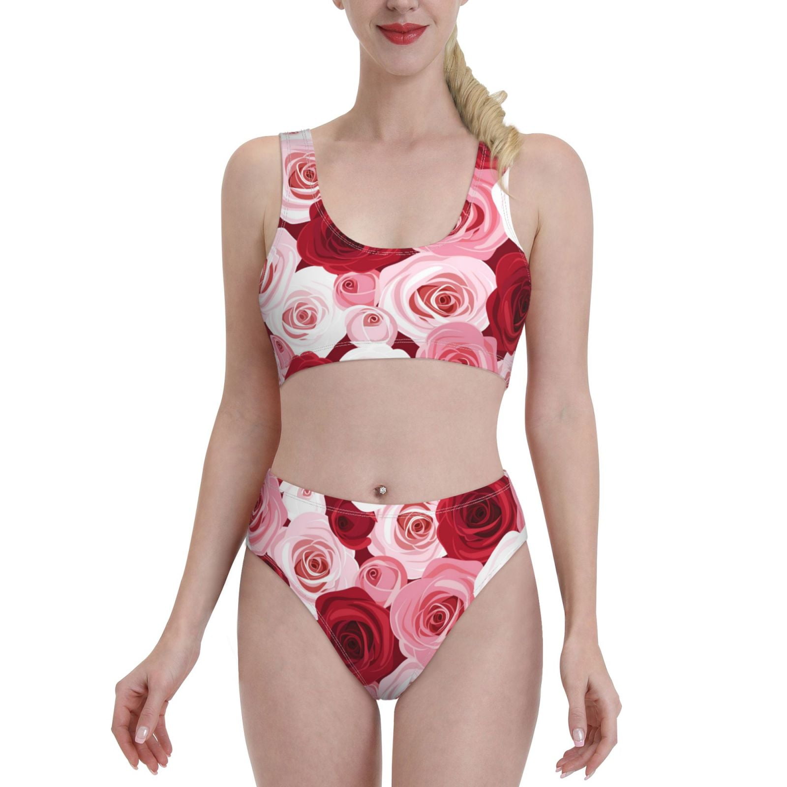 Lukts Women High Waisted Bikini Set Rose Swimsuit Piece Bathing Suit Tummy Control Large is a popular picture for sexy and hot.