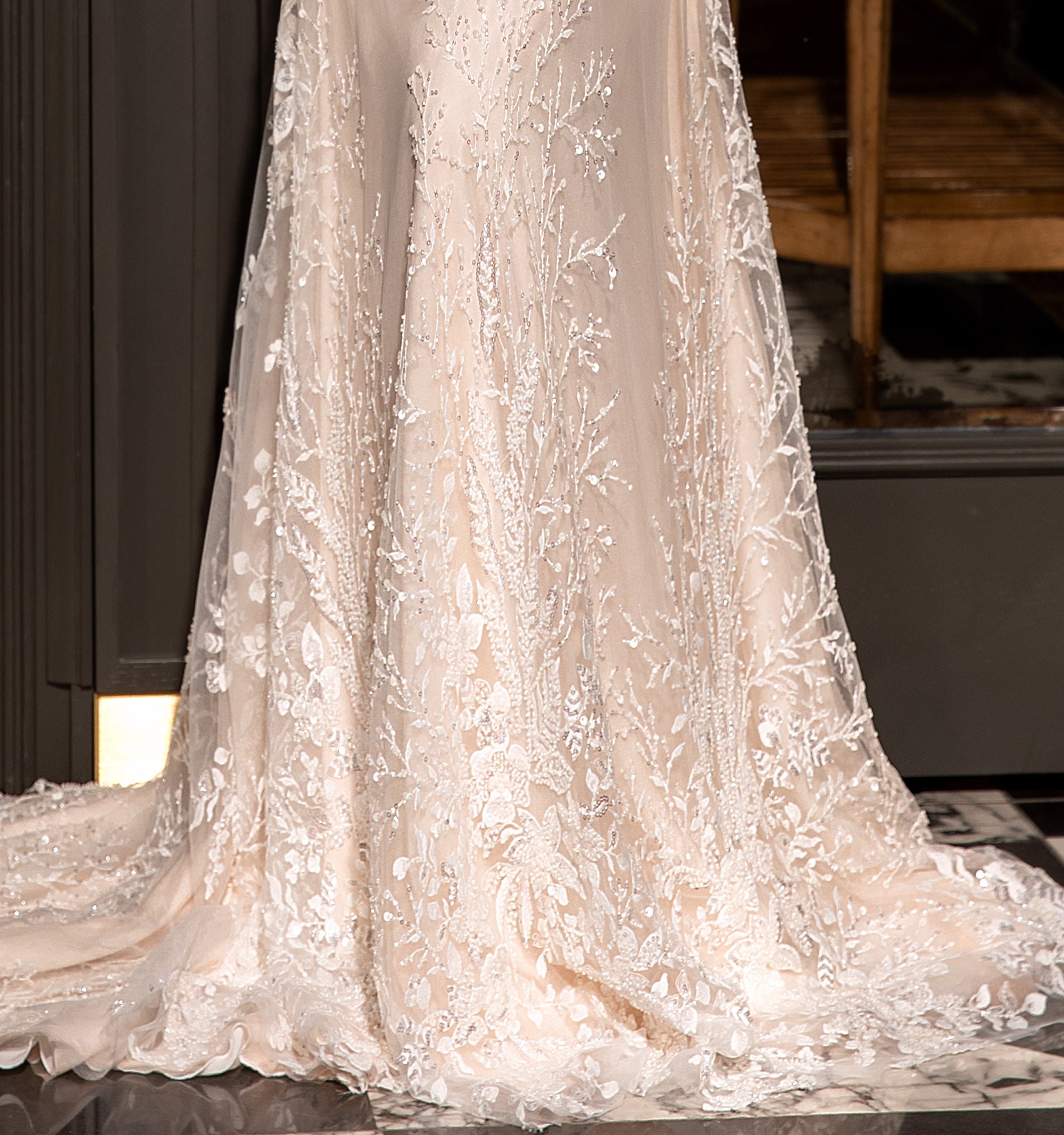 Luxurious Lace Wedding Dress In Lingerie Silhouette Flowing Etsy 21312