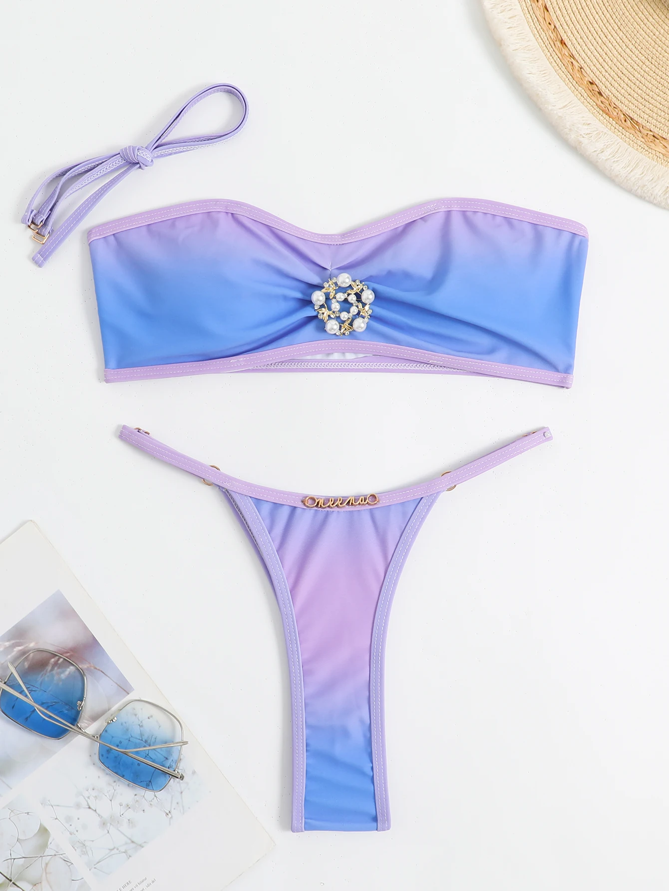 Luxus Perle Bikini Set Frauen Lila Farbverlauf Bandeau Push Up Mikro Bade Bekleidung Brasilia is a popular picture for sexy and hot.