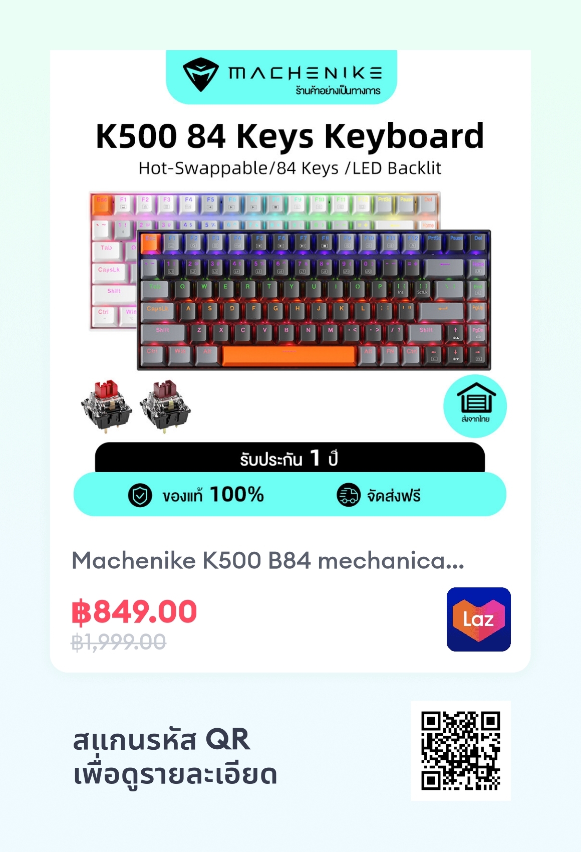 Tag : Machenike K B Mechanical Keyboard Hot Swappable Led