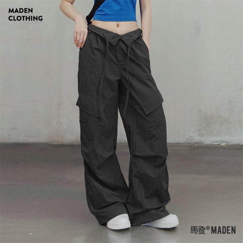 Tag : Maden American Style Flanging Waist Overalls Retro Hot Girl Corset Straight Pants Casual All