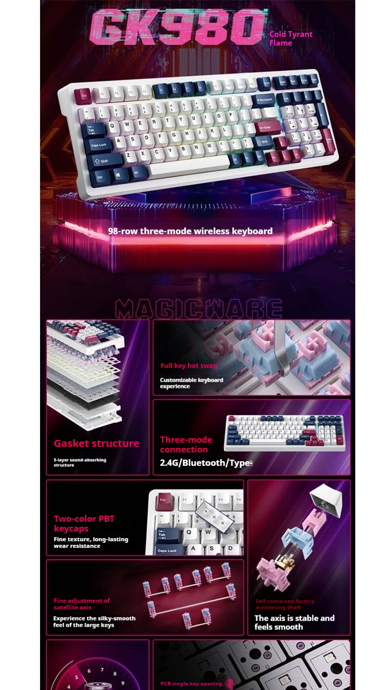 Tag : Magicware Gk Three Mode Wireless Bluetooth Customized Mechanical Keyboard Full Key Hot