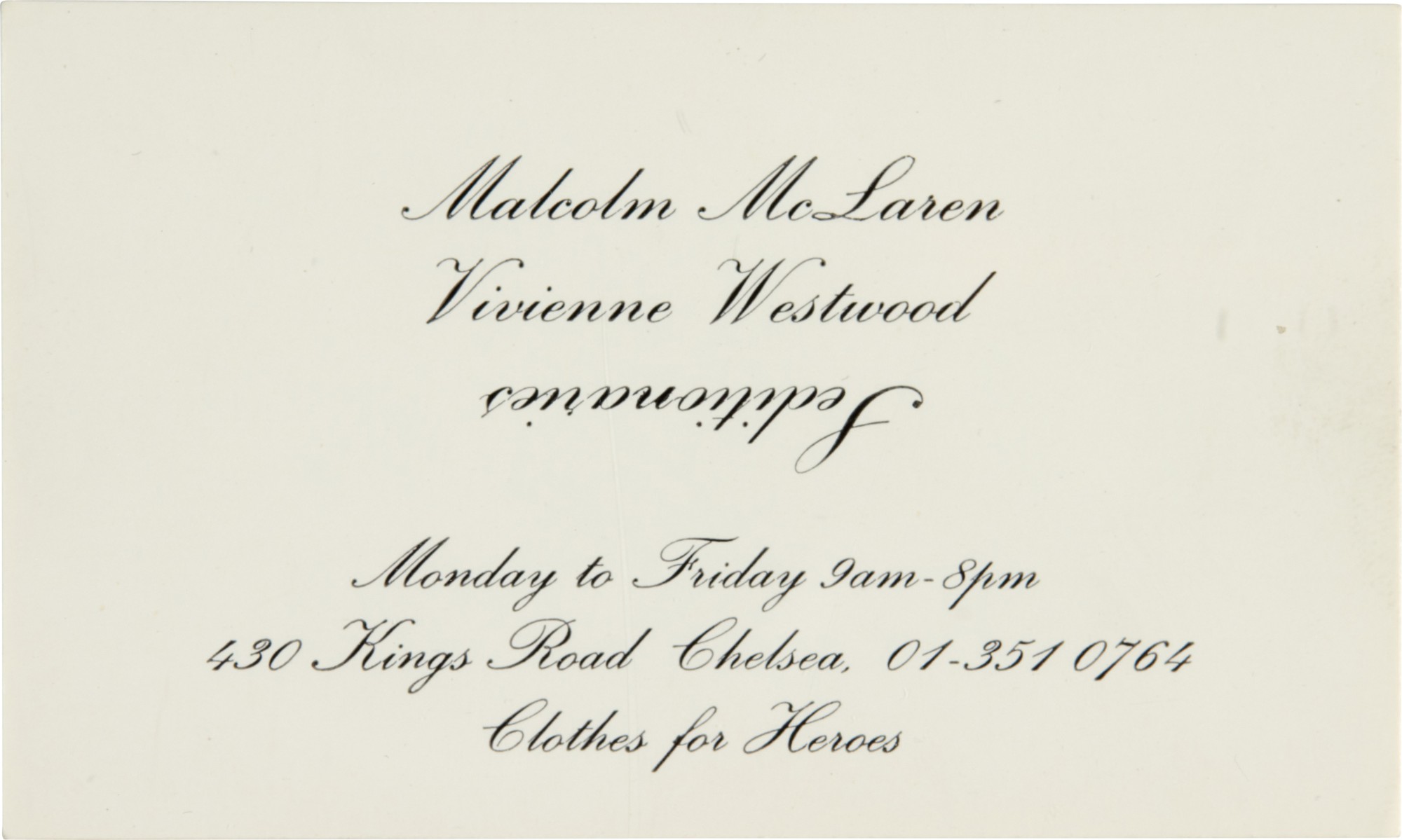 Tag : Malcolm Mclaren And Vivienne Westwood Business Card For Seditionaries The Sex Pistols