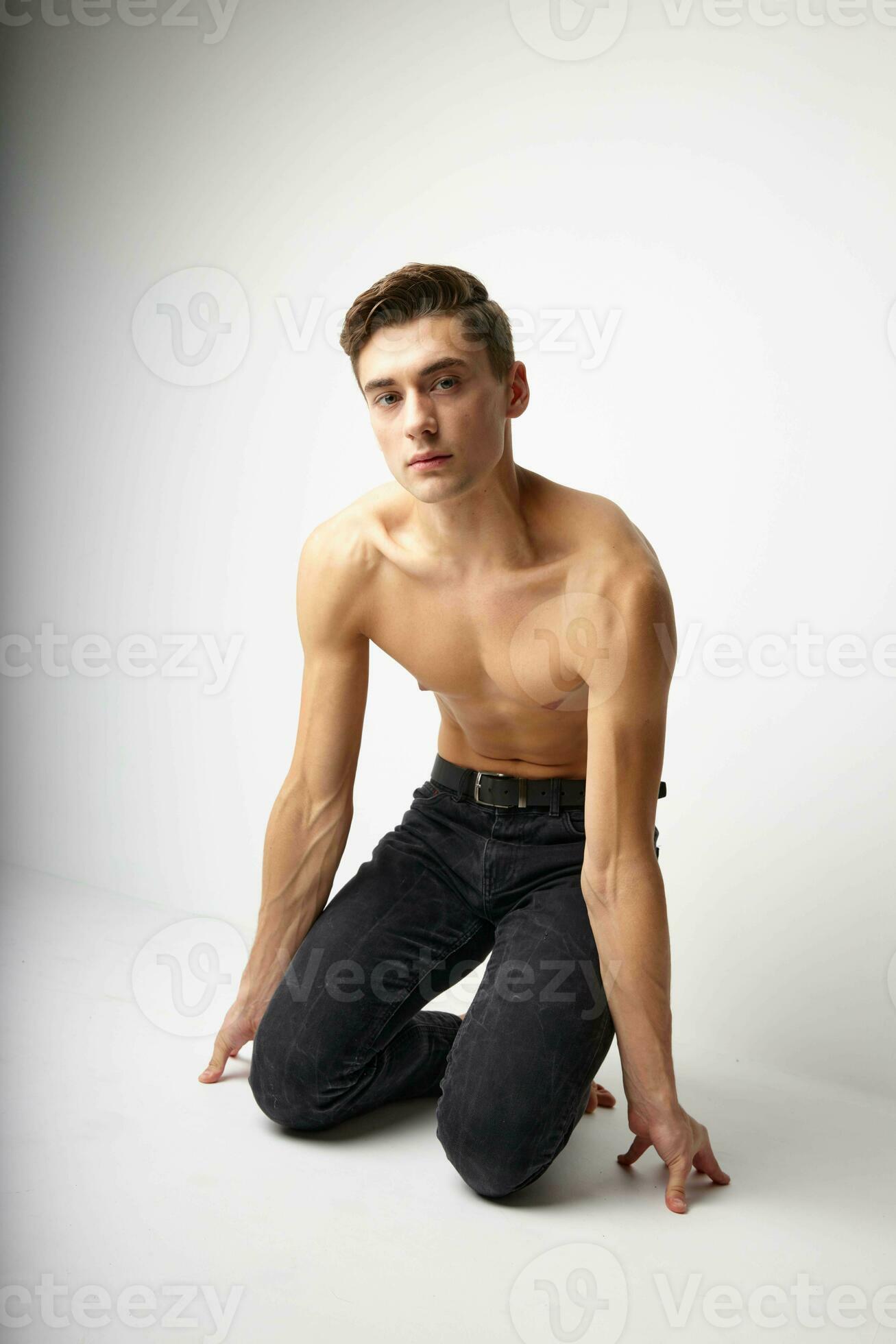 Man Kneeling In Black Trousers Nude Torso Posing Lifestyle Stock Photo At Vecteezy is a popular picture for sexy and hot.