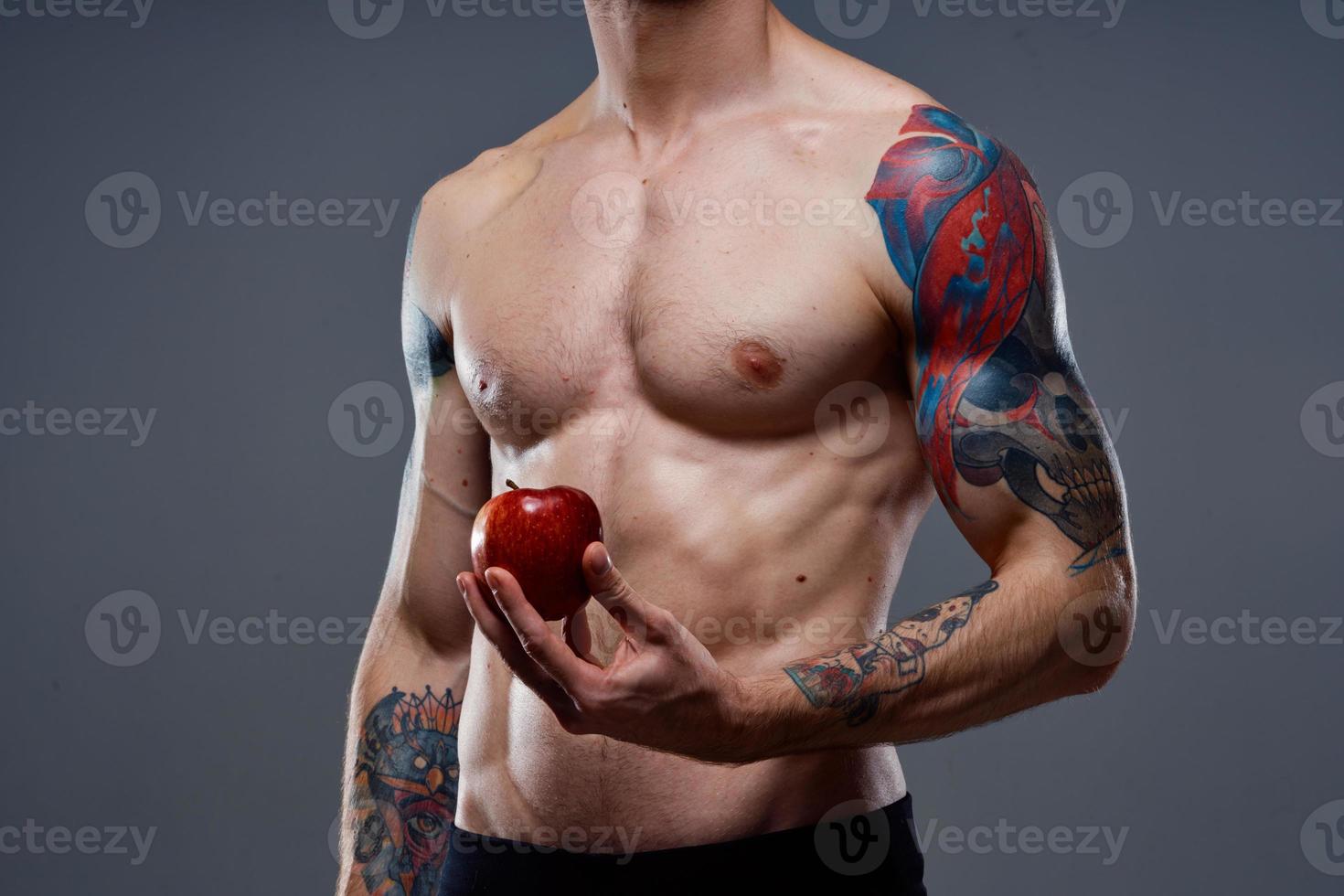 Tag : Man With A Tattoo Holds An Apple In His Hands Naked Torso Pumped Muscles Biceps Press 22057608