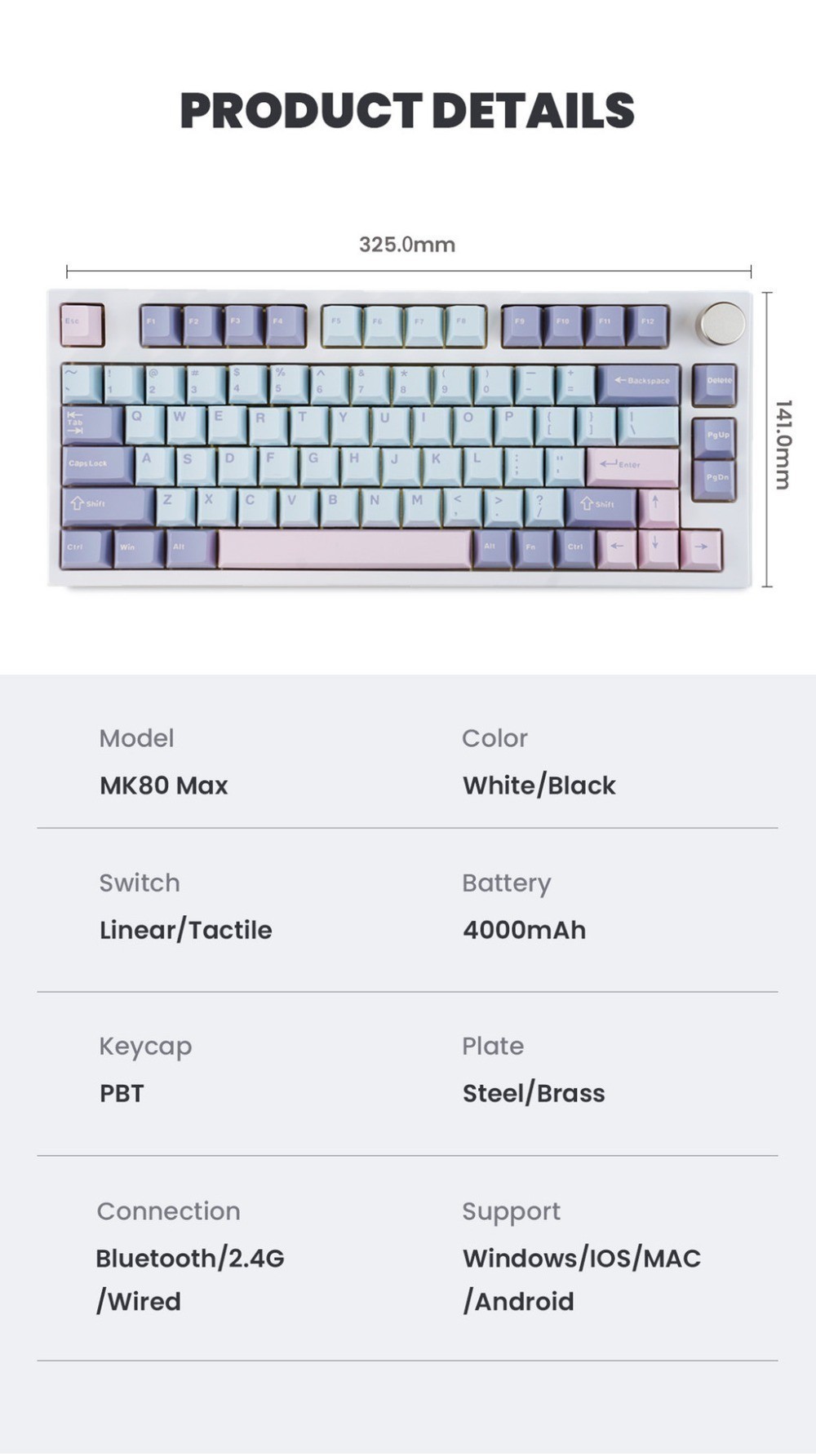 Mathew Tech Mk Max Hot Swappable Mode Wireless Mechanical Keyboard Layout Rgb Linear