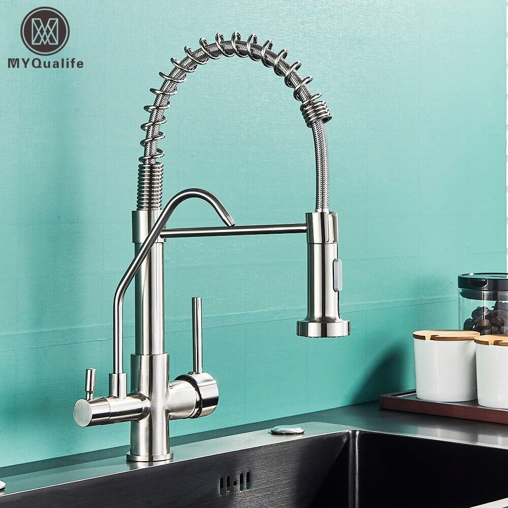 Tag : Matte Black Pure Water Filter Kitchen Faucet Dual Handle Hot And Cold Drinking Water Pull Out
