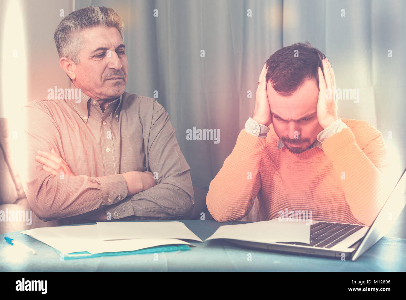 Tag : Mature Father And Son Arguing And Discussing Important Documents At Home Stock Photo Alamy