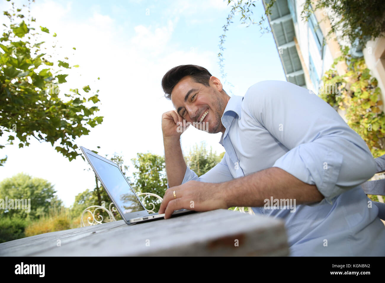 Mature Man On Week End Working From Home With Laptop Stock Photo Alamy is a popular picture for sexy and hot.