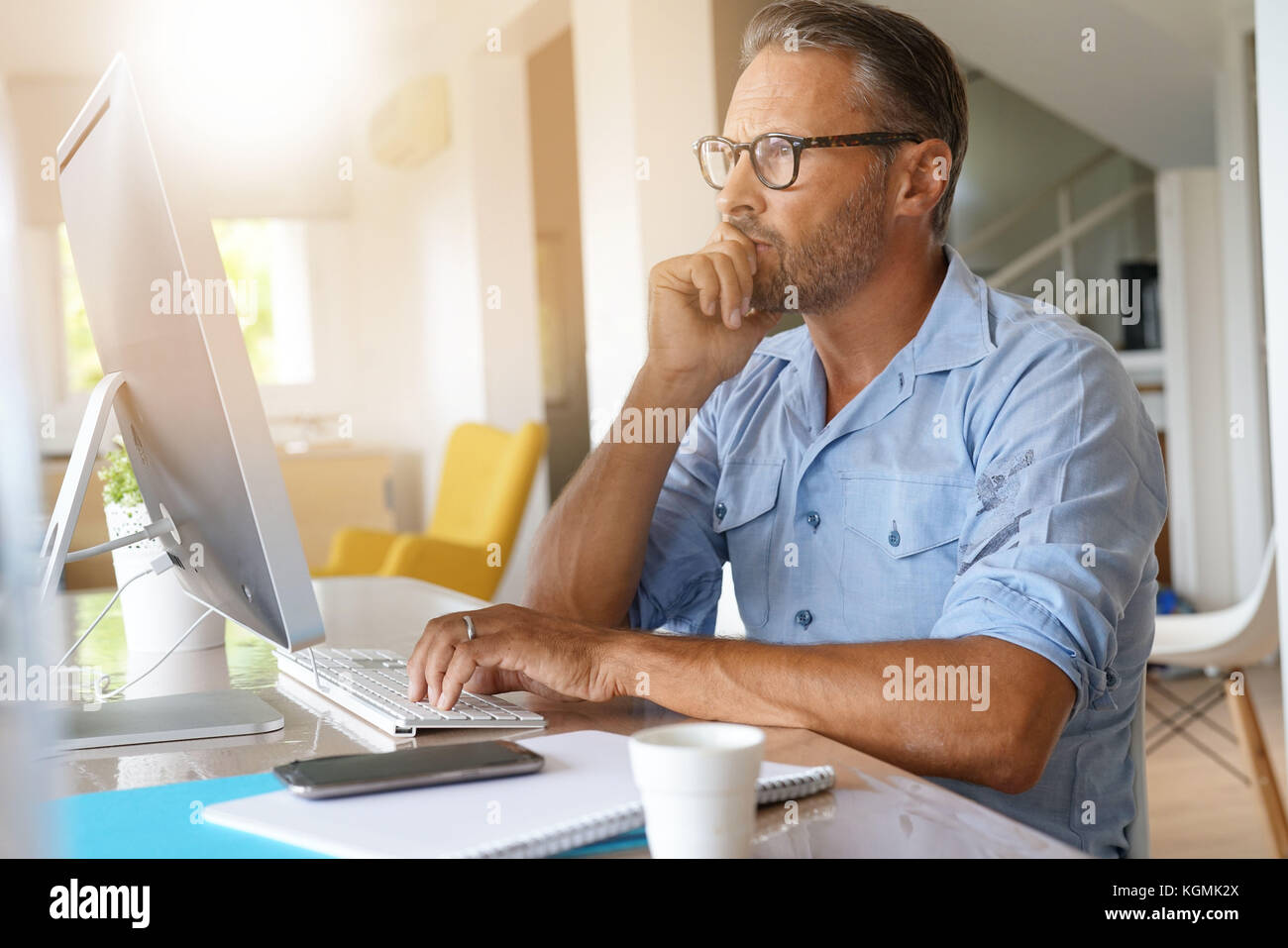 Related pictures for Mature Man Working From Home On Desktop Computer Stock Photo Alamy