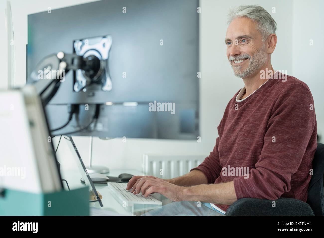 Mature Man Working On Computer At Home Stock Photo Alamy