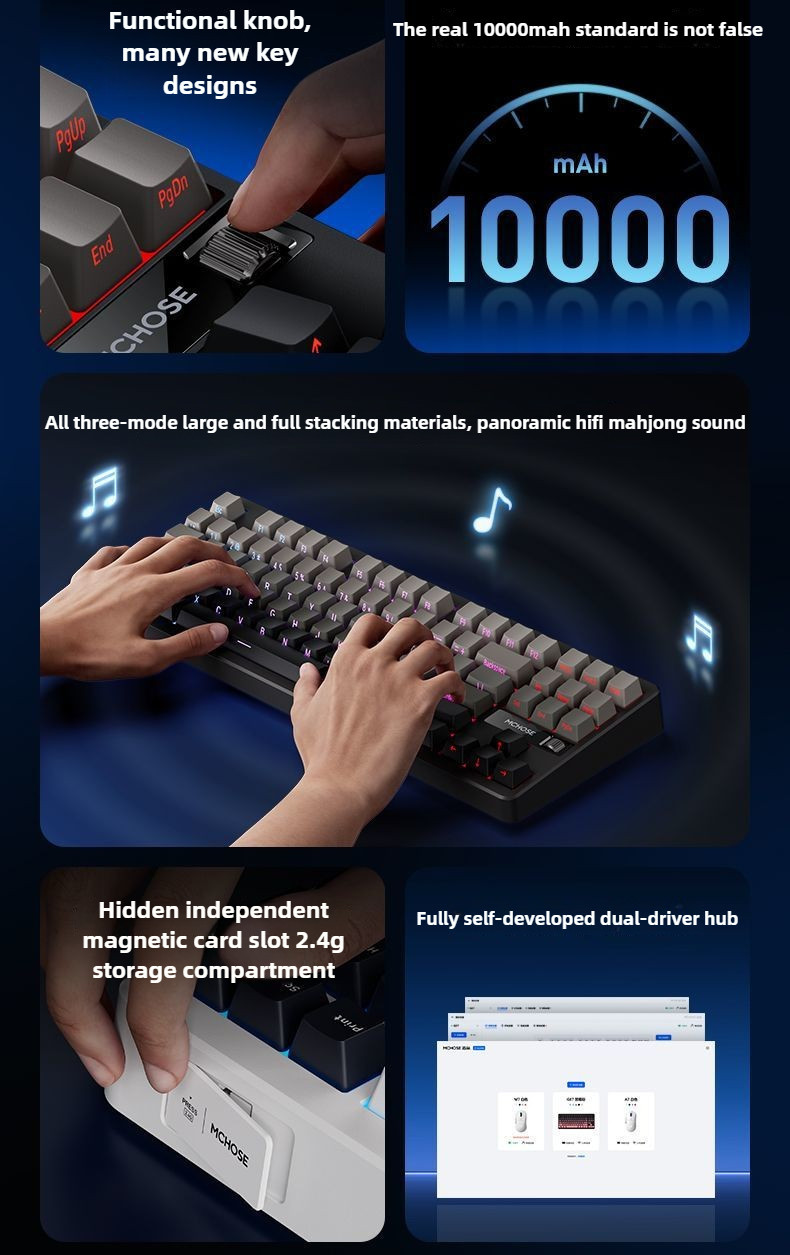Tag : Mchose G Wireless Bluetooth Mode Rgb Mechanical Keyboard With Knob Hot Swap Gasket Structure