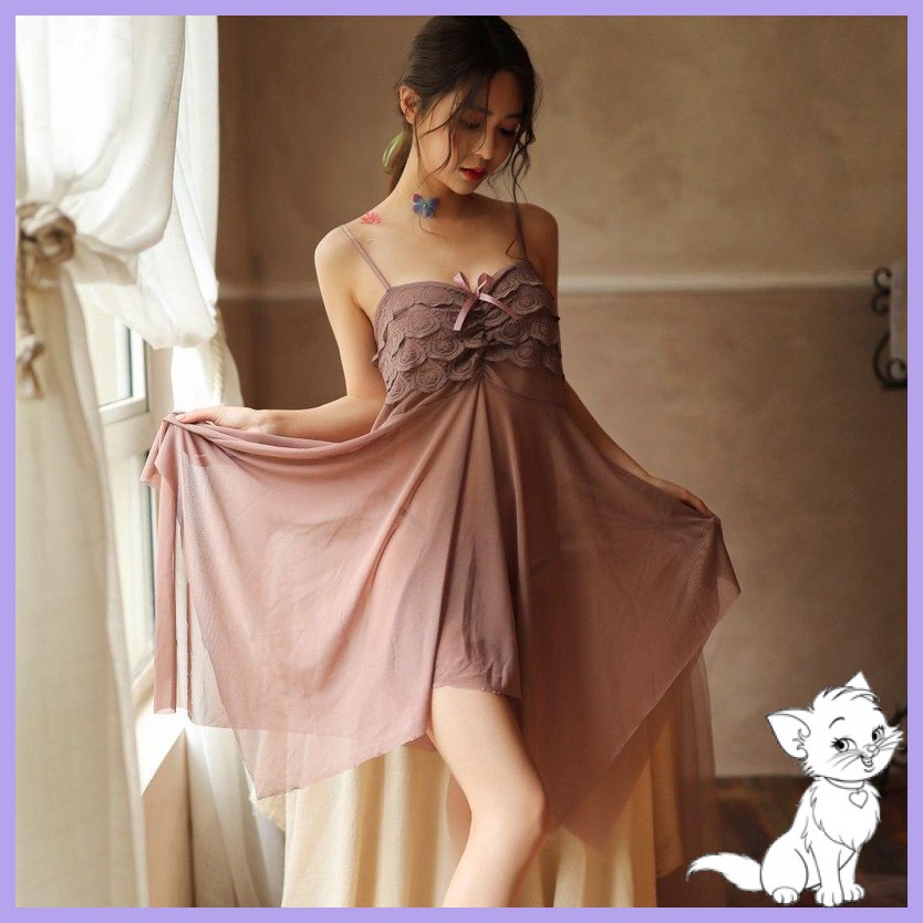 Tag : Meg S Ready Stock Polyester Lingerie Adult Women Lady Lace Nightdress Pajamas G String Khaki