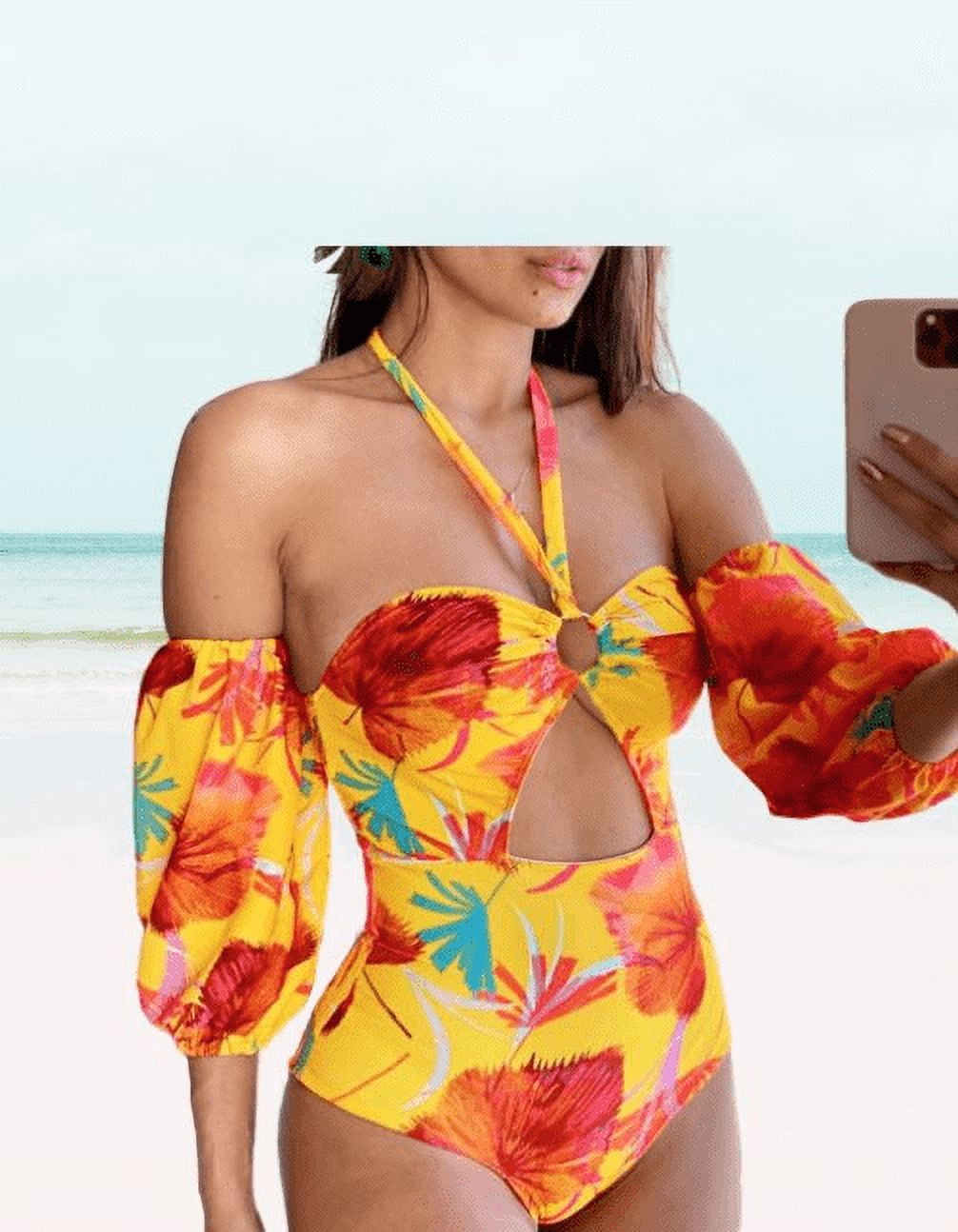 Meloria Swim And Fashion Beautiful And Elegant Floral Halter Hot Sexy Swimsuit Female Yellow is a popular picture for sexy and hot.