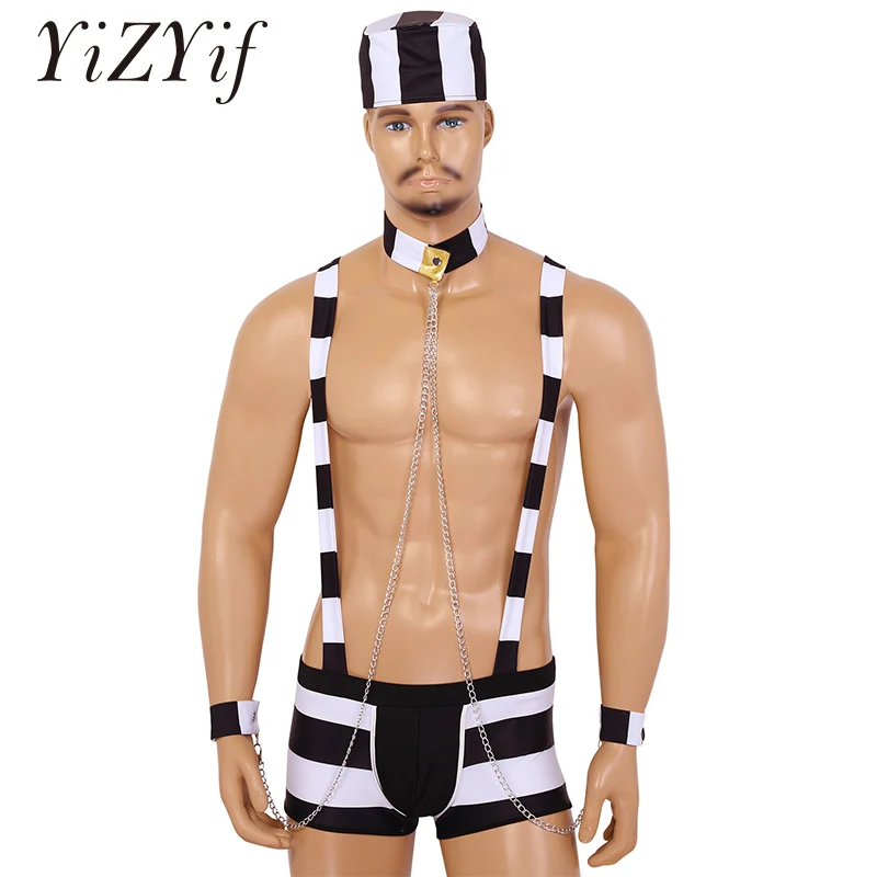 Men Prisoner Costume Halloween Cosplay Sexy Hot Erotic Catsuit Lingerie Striped Suspender Boxer pictures has 500 x 400 · 50 kB · jpeg.