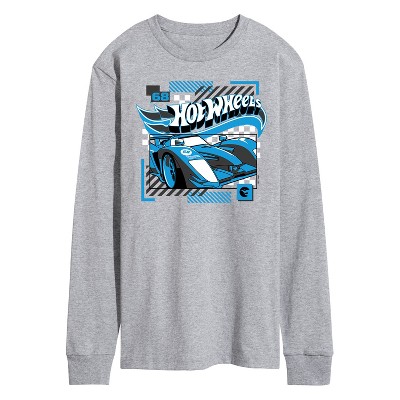 Men S Hot Wheels Blue Geometric Race Car Long Sleeve Graphic T Shirt Target