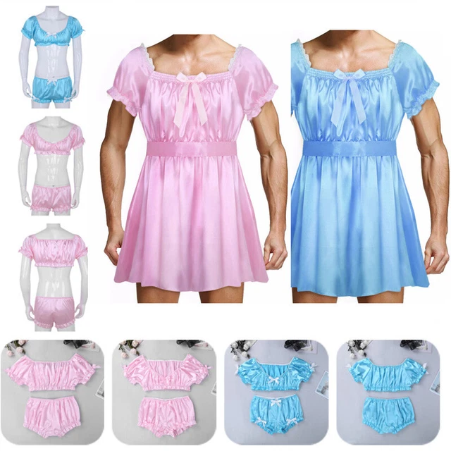 Tag : Men S Sissy Shiny Satin Lingerie Set Silky Crop Tops Bloomers Boxer Underwear Picclick Uk