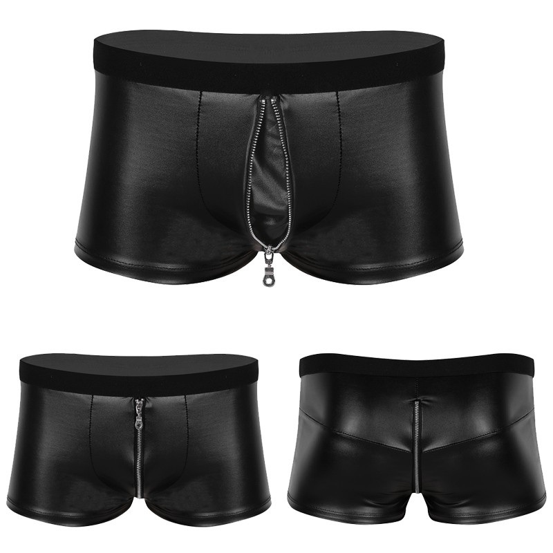 Tag : Mens Faux Leather Lingerie Front Zipper Low Rise Briefs Shorts Underwear Underpants Shopee