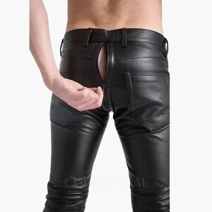 Mens Leather Pant Jeans Trouser Cowhide Soft Gay Bikers Punk Kink Cowboy Bluf Cuir Schwarz Rear is a popular picture for sexy and hot.