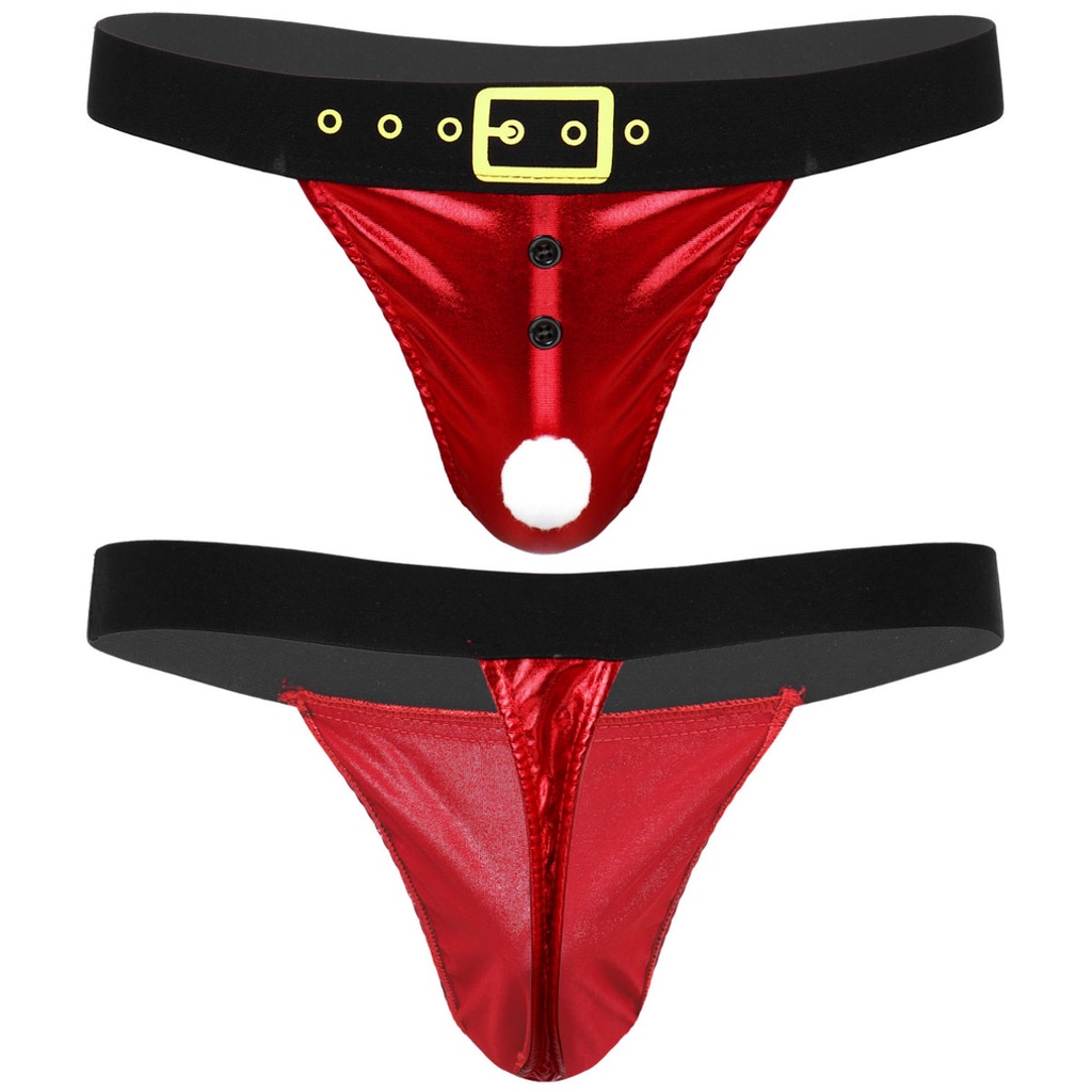Tag : Mens Shiny Metallic Santa Lingerie Low Rise Bulge Pouch T Back Novelty Christmas Costume Thong