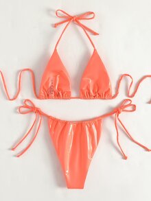 Metallic Micro Triangle Thong Bikini Swimsuit Shein Usa is a popular picture for sexy and hot.