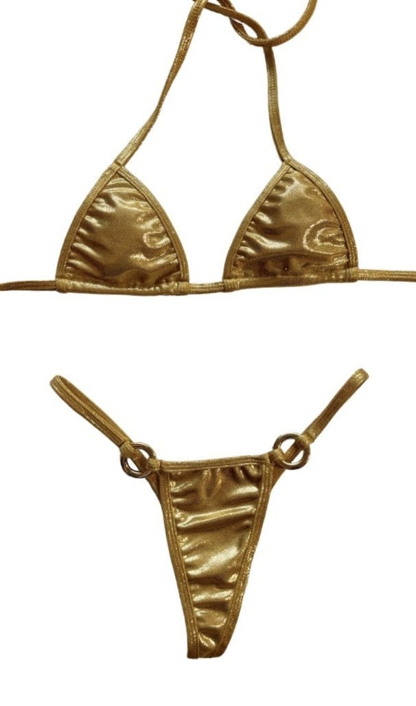 Micro String Bikini Set Triangle Adjustable Top G String Brazilian Bottoms Extra Small Sexy